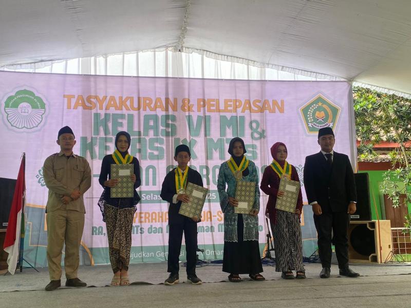 Nama murid MI yang mendapat beasiswa prestasi yaitu Yasmin Mahira putri dari Hilmi Masykur, Wulan Ayu putri dari Muhammad Salim dan Cakra Oka Perdana putra dari Muhammad Muhyi. Untuk nilai PAI tertinggi, diterima oleh Rizka Samtorul Yani’ah putri dari Slamet Haryono.
