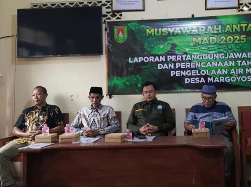 Sariyono Ketua BPSPAMS Margoyoso menjelaskan pertemuan ini untuk pertanggung jawaban pengelolaan air BPSPAMS "Dalam pertemuan kemarin membahas tentang pertanggung jawaban pengelolaan air oleh BPSPAMS Margotirto seperti realisasi penggunaan anggaran Sisa Hasil Usaha (SHU), termasuk realisasi kegiatan penyaluran SHU pada tahun 2023 dan 2024, yaitu yang digunakan untuk pemeliharaan jaringan, sosial, konservasi, penguatan kelembagaan, PADes dan Operasional Kelembagaan termasuk penyelengaraan MAD ini. kemudian juga membahas rencana Kegiatan Anggaran (RKA) tahun 2025" jelas Sariyono.