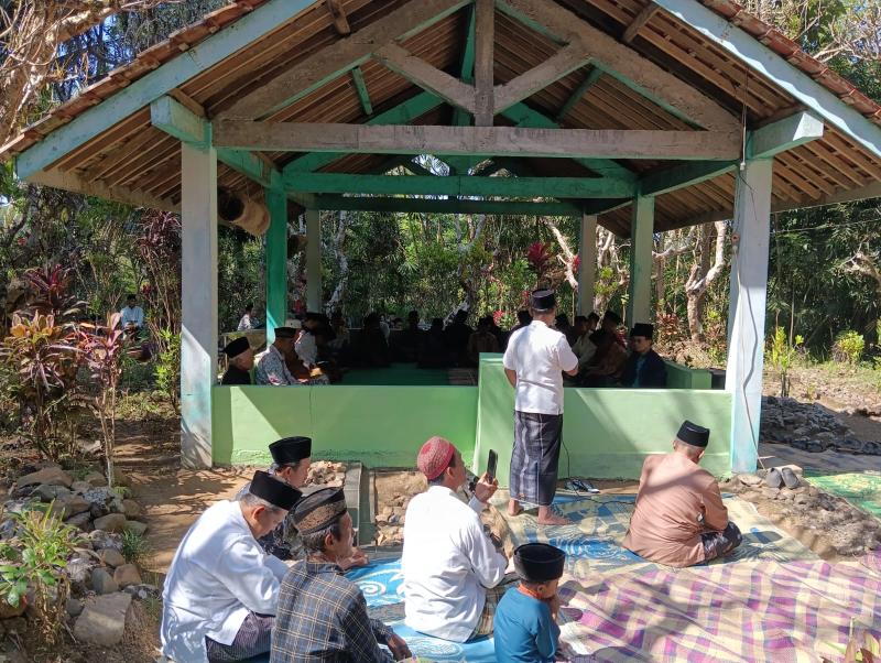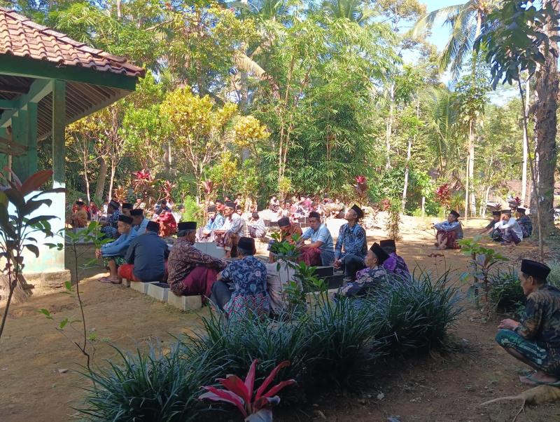 Adapun tata cara pelaksanaan upacara adat ini adalah: warga datang dan berkumpul di makam dengan membawa sedekah/ berkat berupa nasi, sayur dan lauk yang sudah dikemas dengan kranjang, kardus atau besek. Sedekah tersebut diserahkan kepada panitia untuk dibagikan kembali setelah acara selesai. Acara dibuka oleh MC yang dilanjutkan dengan sambutan dari Panitia dan bapak Kepala Desa. Setelah itu acara dilanjutkan dengan Tausiyah dari sesepuh desa kemudian dilanjutkan dengan mengirim doa (bacaan tahlil). Setelah selesai mengirim doa dimakam leluhur warga kembali ke tempat berkumpul tadi untuk makan dan minum yang telah disediakan panitia, kemudian membawa berkat yang ada di meja untuk dibawa pulang.