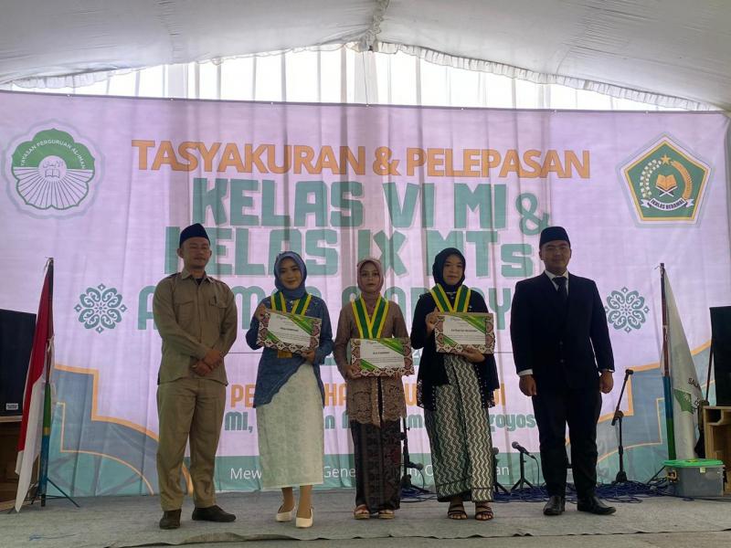 Nama murid MI yang mendapat beasiswa prestasi yaitu Yasmin Mahira putri dari Hilmi Masykur, Wulan Ayu putri dari Muhammad Salim dan Cakra Oka Perdana putra dari Muhammad Muhyi. Untuk nilai PAI tertinggi, diterima oleh Rizka Samtorul Yani’ah putri dari Slamet Haryono.