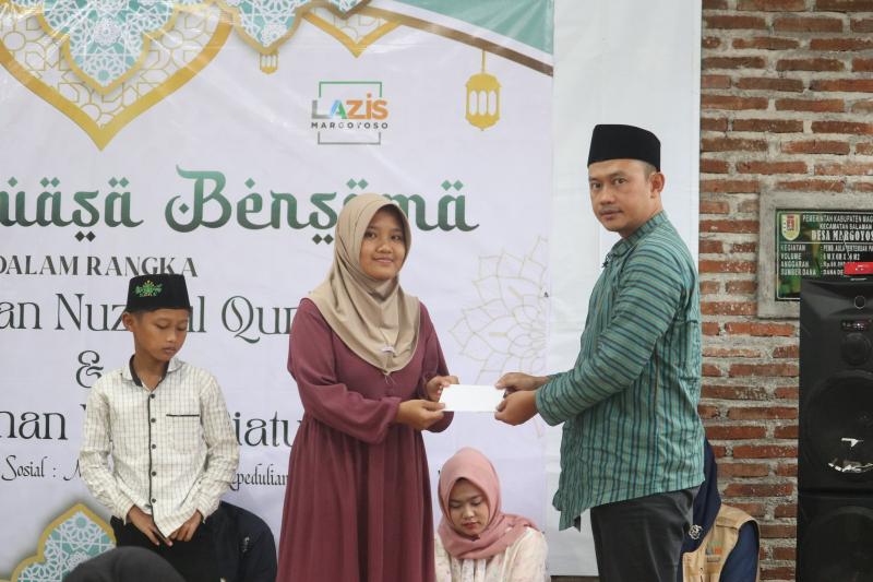 Memulai acara, Kepala Desa Margoyoso Adi Daya Perdana, A.Md. dalam sambutannya, ia menyampaikan terima kasih atas terselenggaranya acara pada hari ini. Ia juga menjelaskan mengenai peran LAZIS Desa Margoyoso dalam menghimpun dana kemudian mendistribusikan dana tersebut dengan syarat dan ketentuan yang berlaku selama lebih dari 14 tahun.