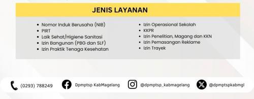 Jenis layanan yang akan dibantu adalah nomor induk berusaha (NIB), PIRT, laik sehat, izin bangunan PBG dan SLF, izin praktik tenaga kesehatan, izin operational sekolah, KKPR, izin penelitian magang dan KKN, ijin reklame dan izin trayek.