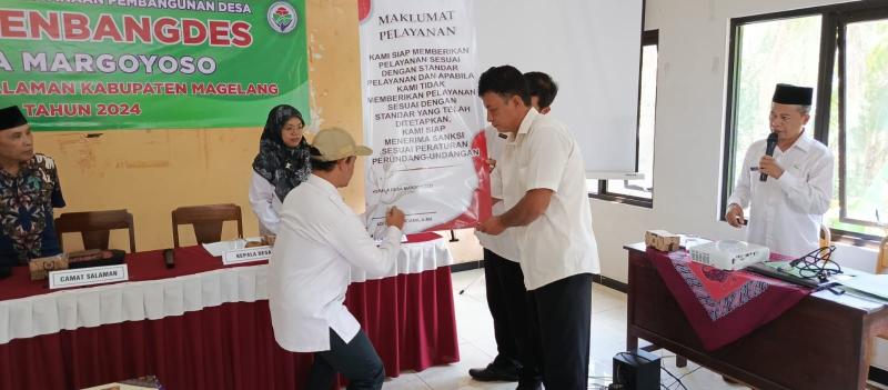 KOTA MUNGKID – Desa Margoyoso melalui Program Desa Anti Korupsi berkomitmen untuk memberikan pelayanan kepada masyarakat sesuai dengan aturan perundang-undangan yang berlaku. Program ini diinisiasi oleh Inspektorat Kabupaten Magelang dan Komisi Pemberantasan Korupsi Divisi Pencegahan.